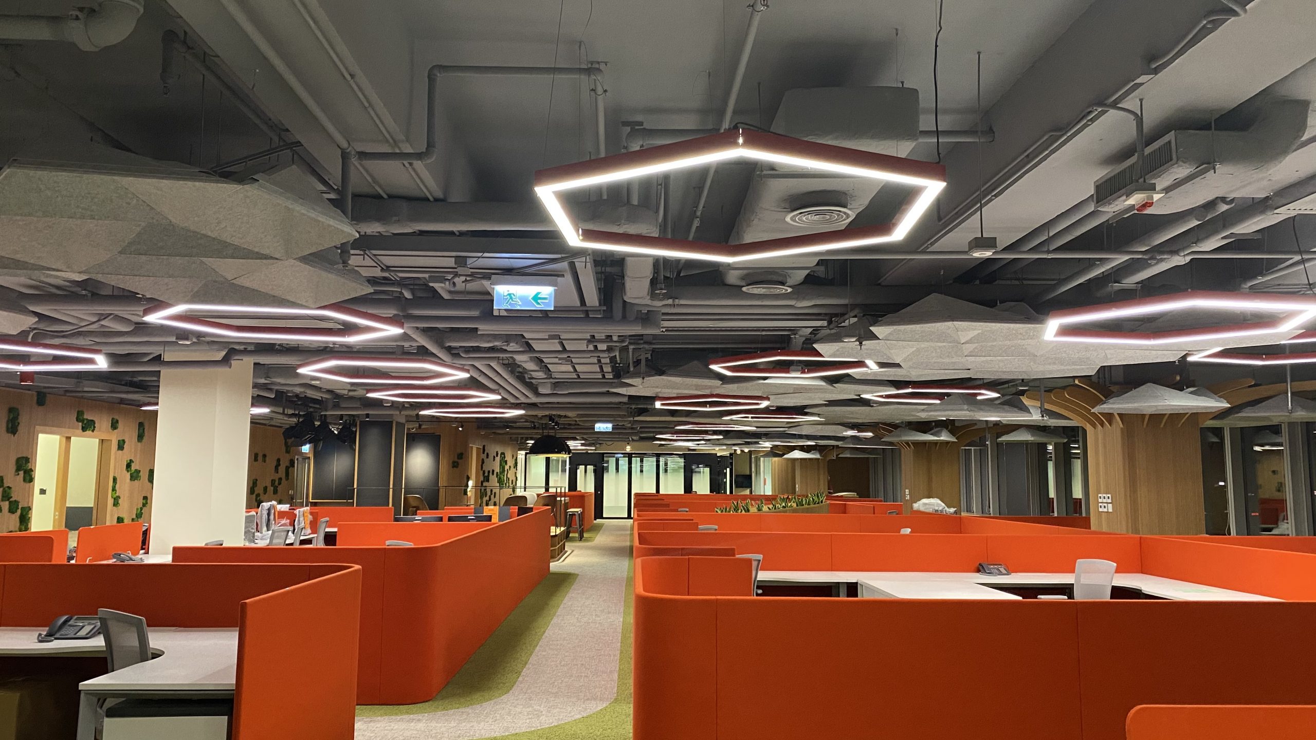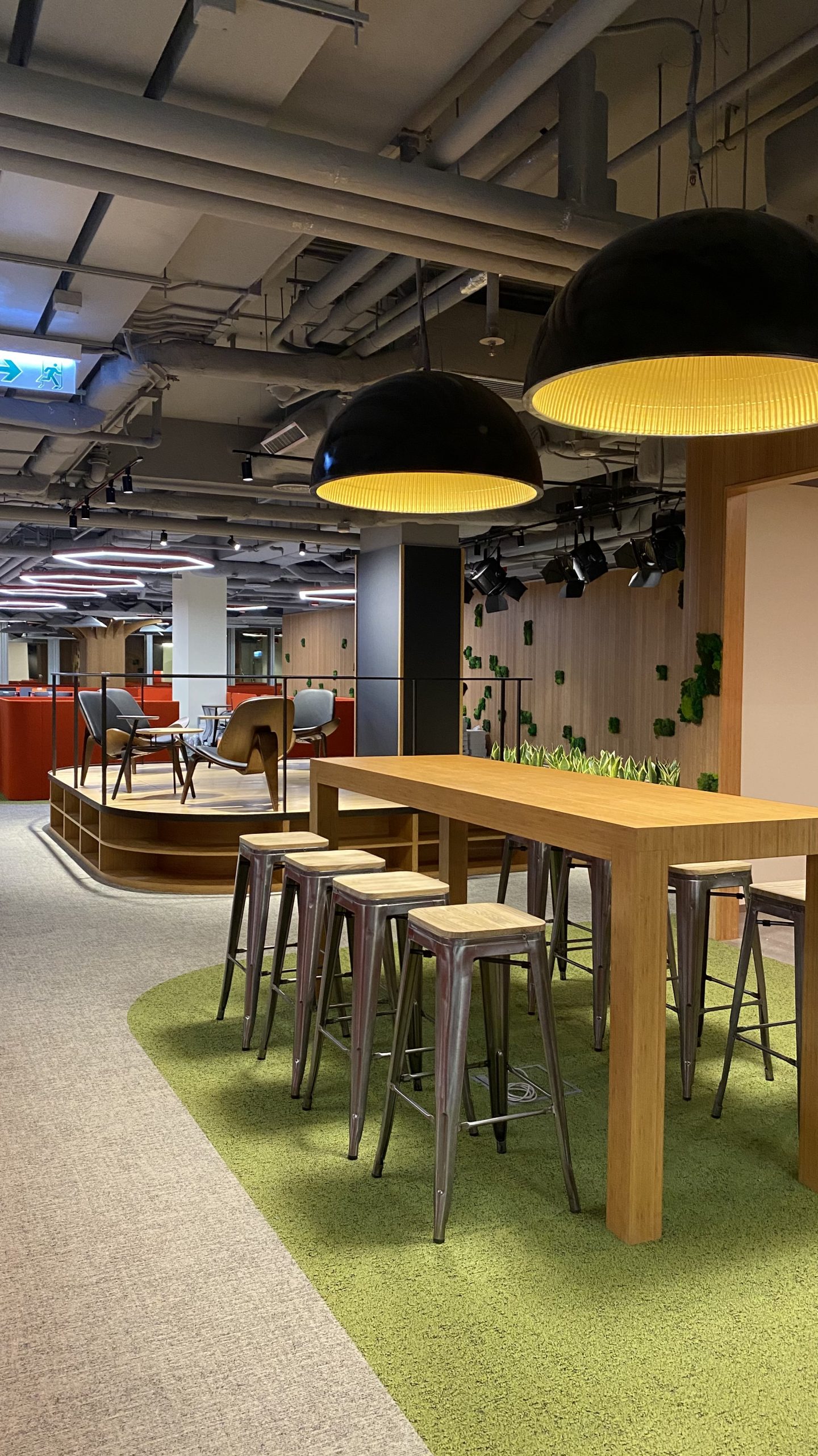 The New Municipal Sector Division (MunSD) and Digitalization and Technology Division (DTD) Office of the Electrical and Mechanical Services Department (EMSD) sits at the top floor of the Skyline Tower in Kowloon Bay, and features a combination of open plan, semi-private and enclosed workspaces, providing choice and flexibility in a multi-dimensional way. Placing emphasis on employee physical and mental health, acoustic pods, breakout areas, lounges, noise-cancelling areas and brainstorming barns have been incorporated in the interior design, phasing out the traditional office layout of expansive swathes of desk bays. The cutting-edge workplace has further been transformed with a biophilic design, with an extensive use of plants, natural materials and high natural light coverage. In addition, the interior design adopts many innovative and environmental features like real-time CO2 monitoring, robot cleaning and light sensors to reduce energy consumption. This project is targeted for the BEAM Plus Building Interior (Version 1.0) – Platinum rating.